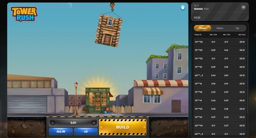 - 🏗️ Triple Build: Drei zusätzliche Etagen werden ohne Risiko direkt gestapelt, wodurch der Multiplikator erheblich steigt. Gerade zu Beginn oder nach dem Ziehen spezieller Karten bietet diese Funktion einen enormen Vorteil zur Gewinnmaximierung.